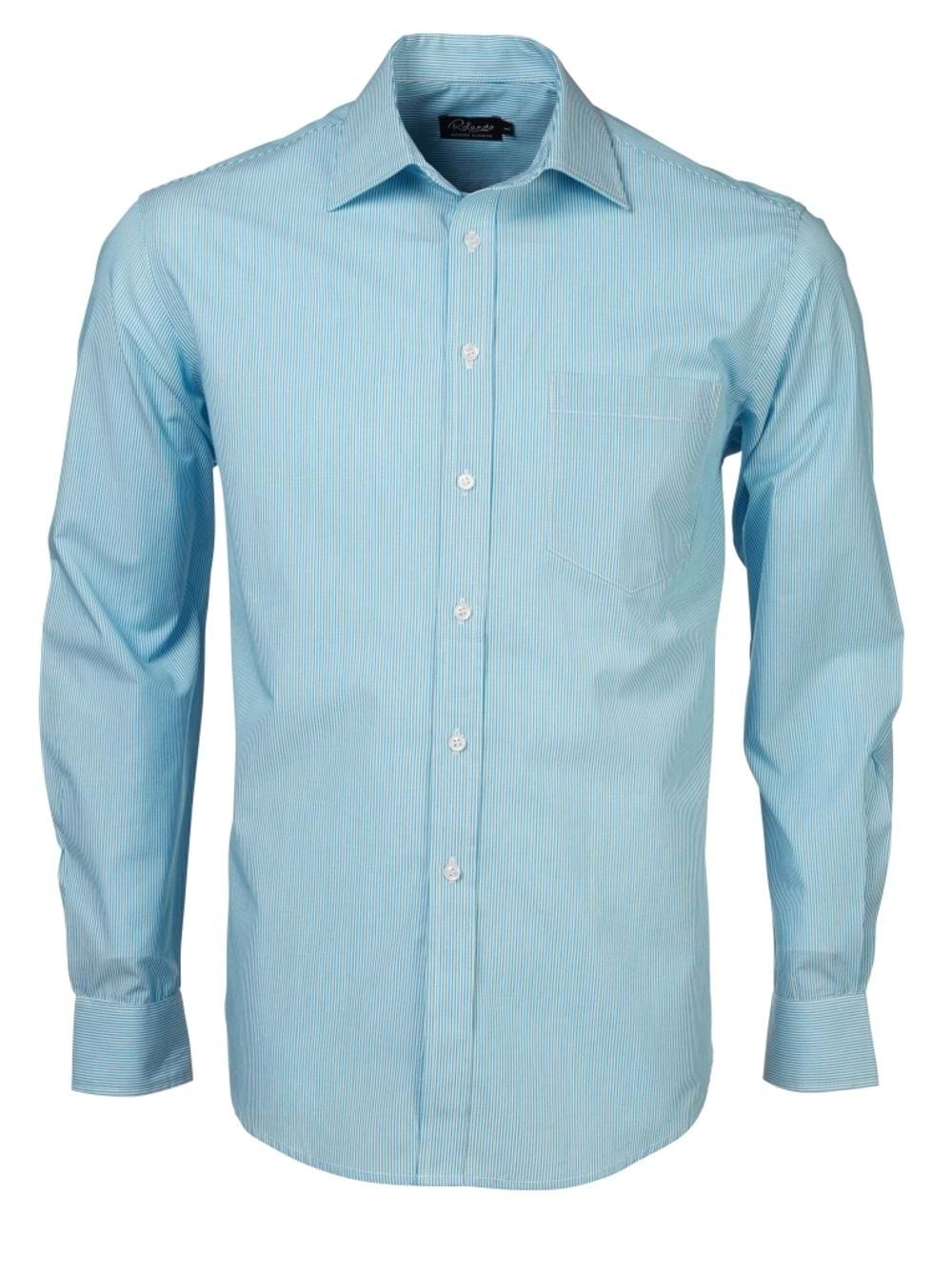 Mens K218 L/S Shirt - Cyan/White