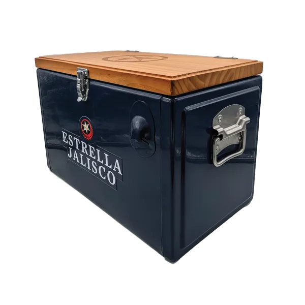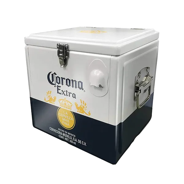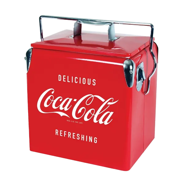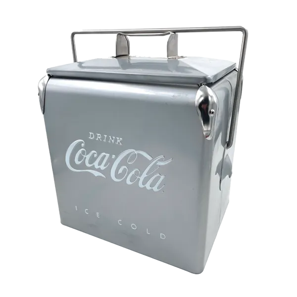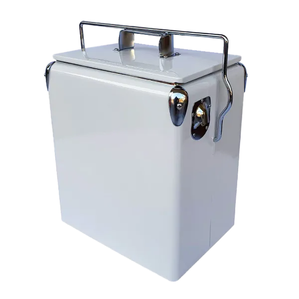 The retro painted metal ice chest design and polished chrome accents make this cooler an eye-catching accessory. It is compact, convenient, portable and durable. The self-locking carry handle secures lid to trap air inside and thick non-toxic plastic liner resists dents and odour and wipes down easily. The eco-friendly insulate ice bucket cooler is made of food-grade environmentally-friendly materials to keep your drinks and snacks cool without electricity or harmful CFCs.